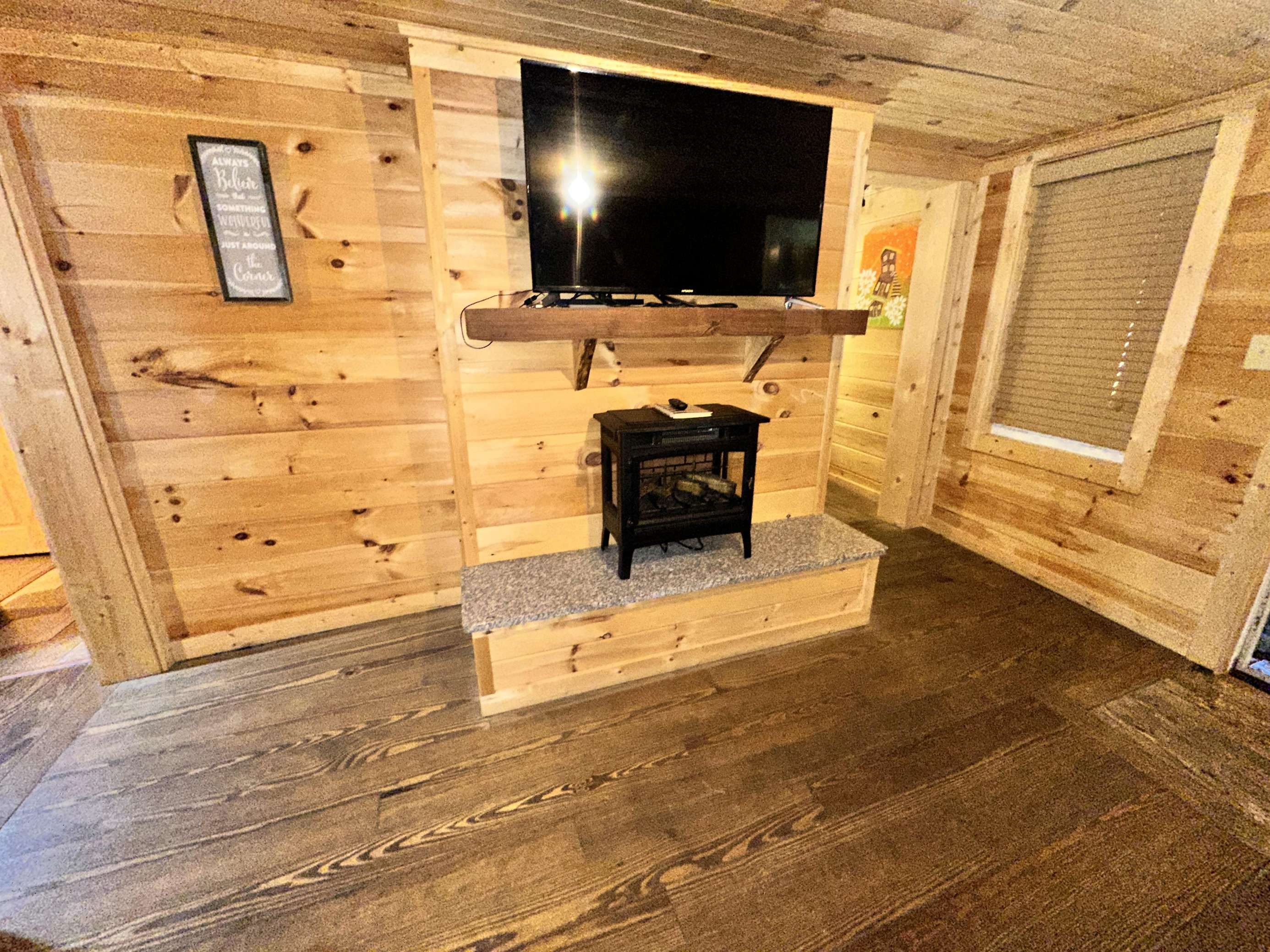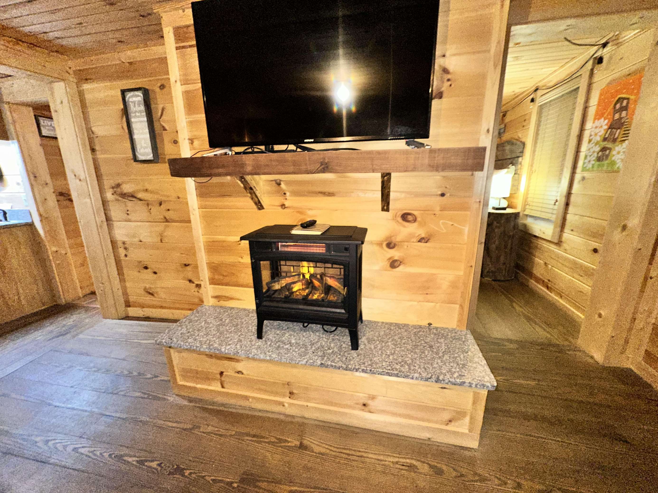 Electric fireplaces in living room and bedroom. Cabins of Asheville +1