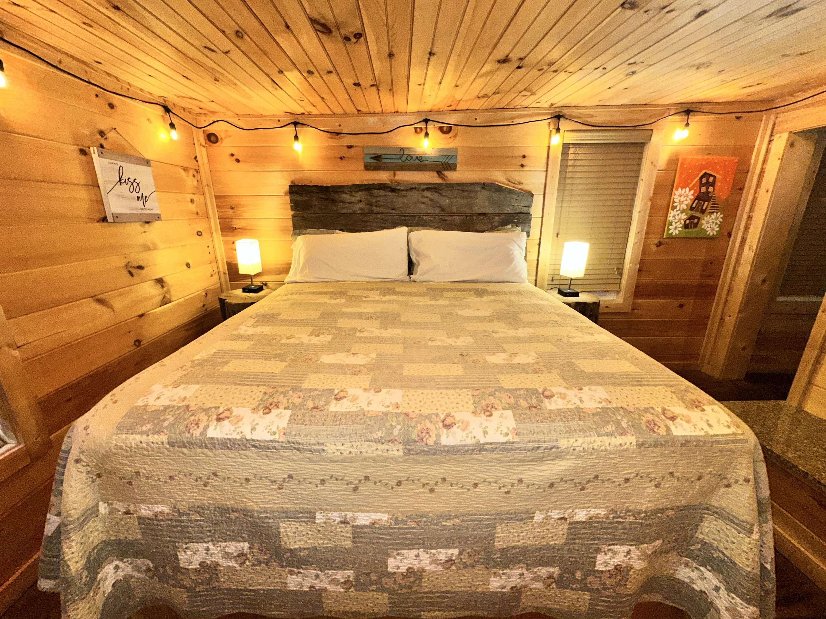 King-size bed (no footboard). Cabins of Asheville +1