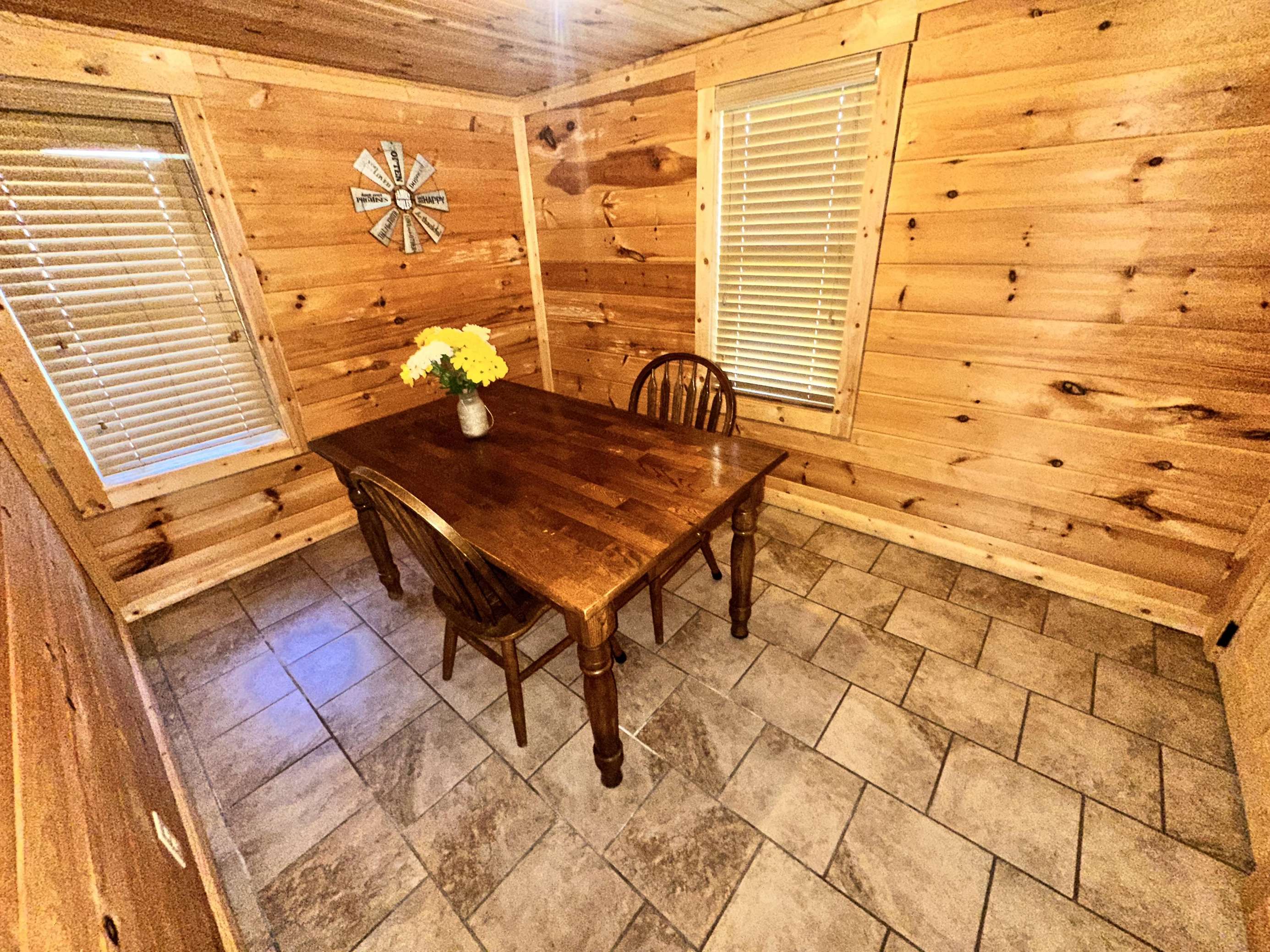 Dining nook and area for meals. Cabins of Asheville