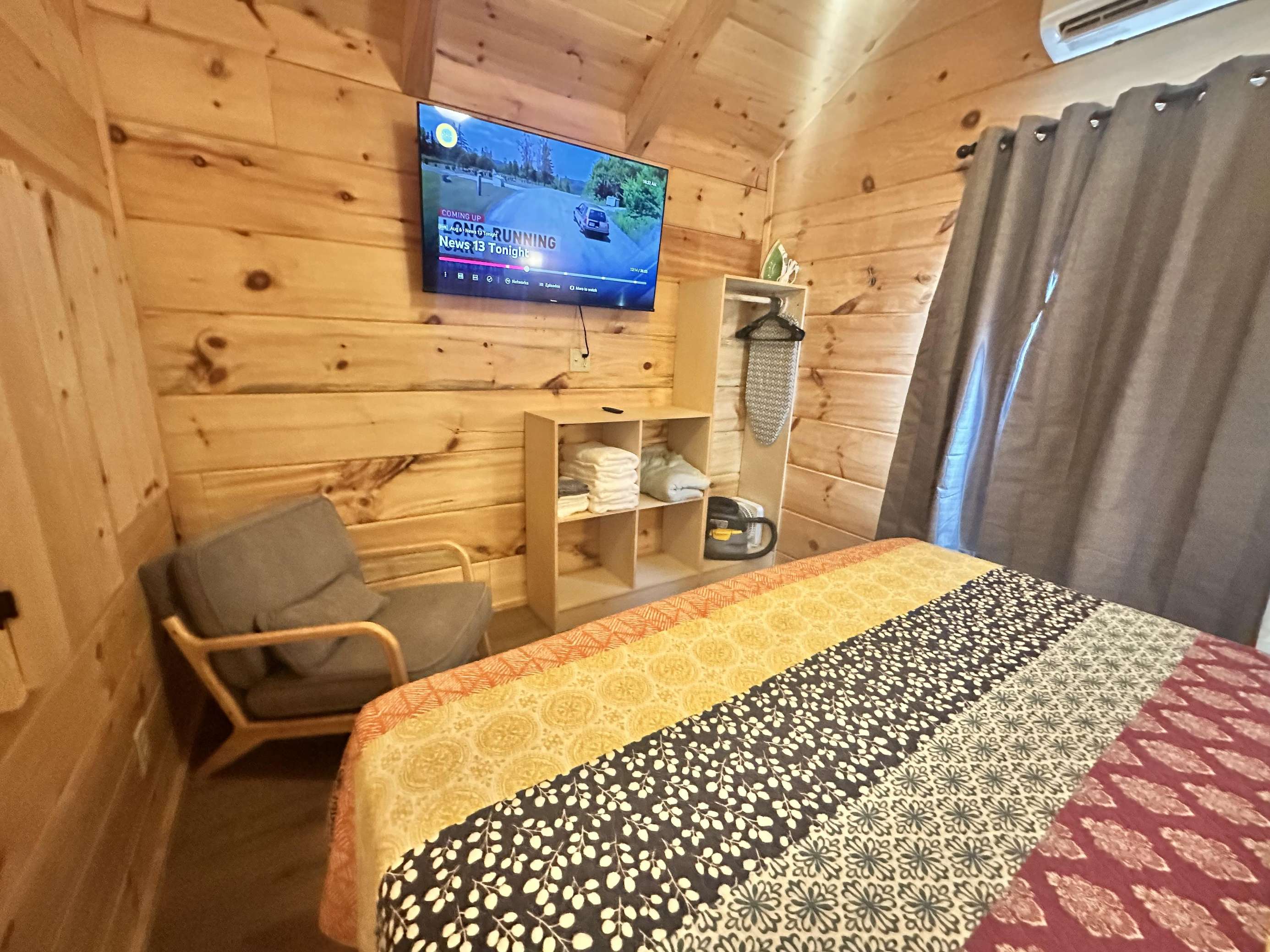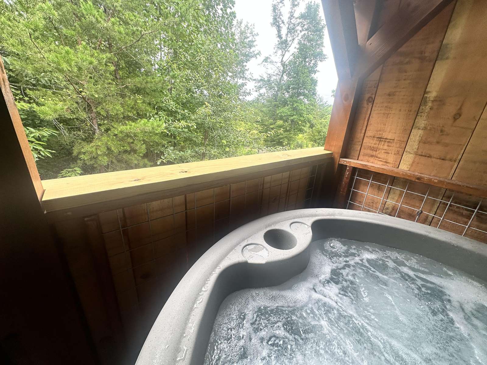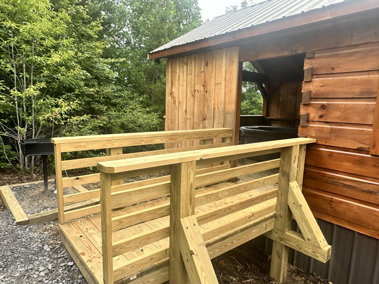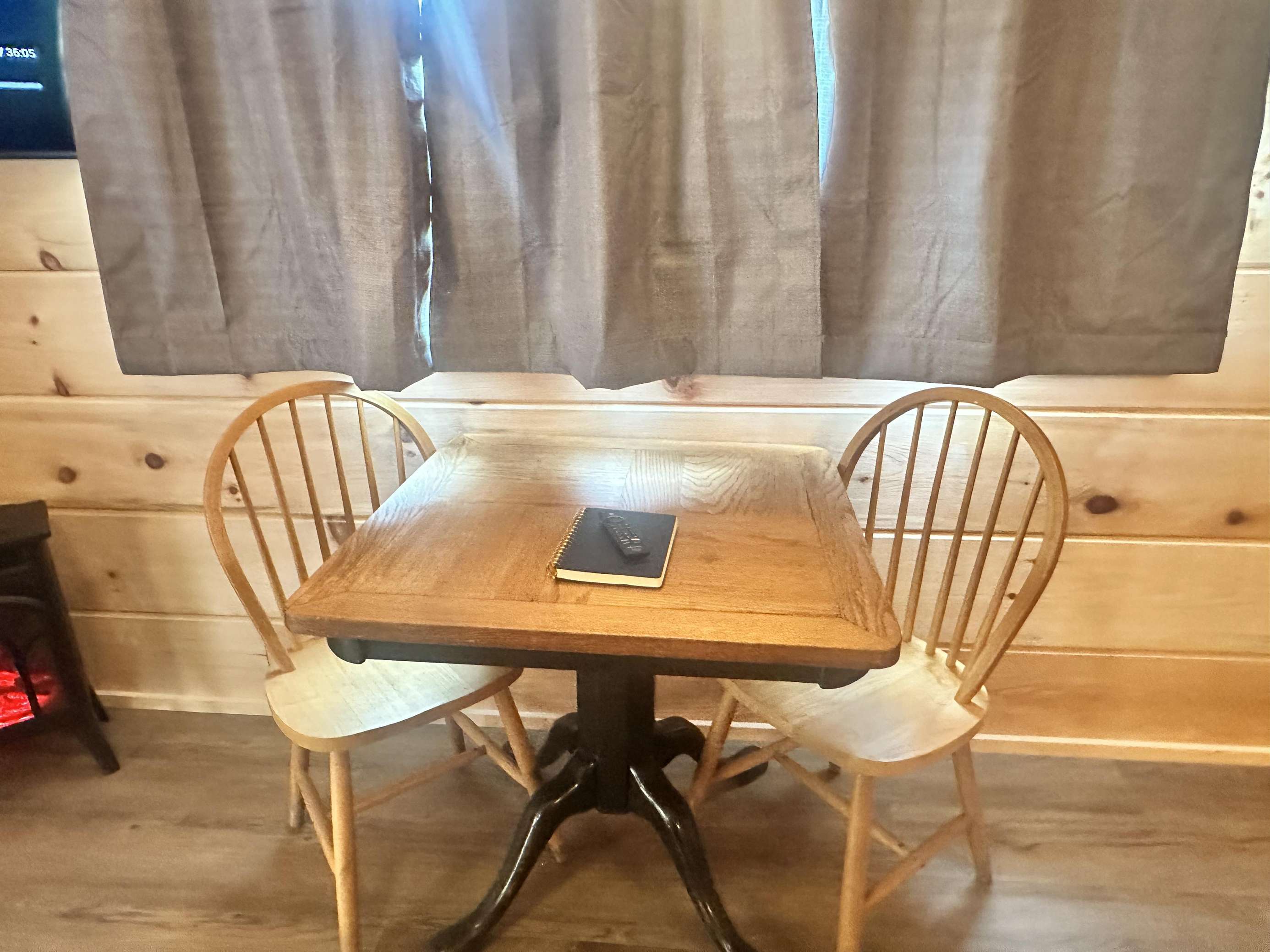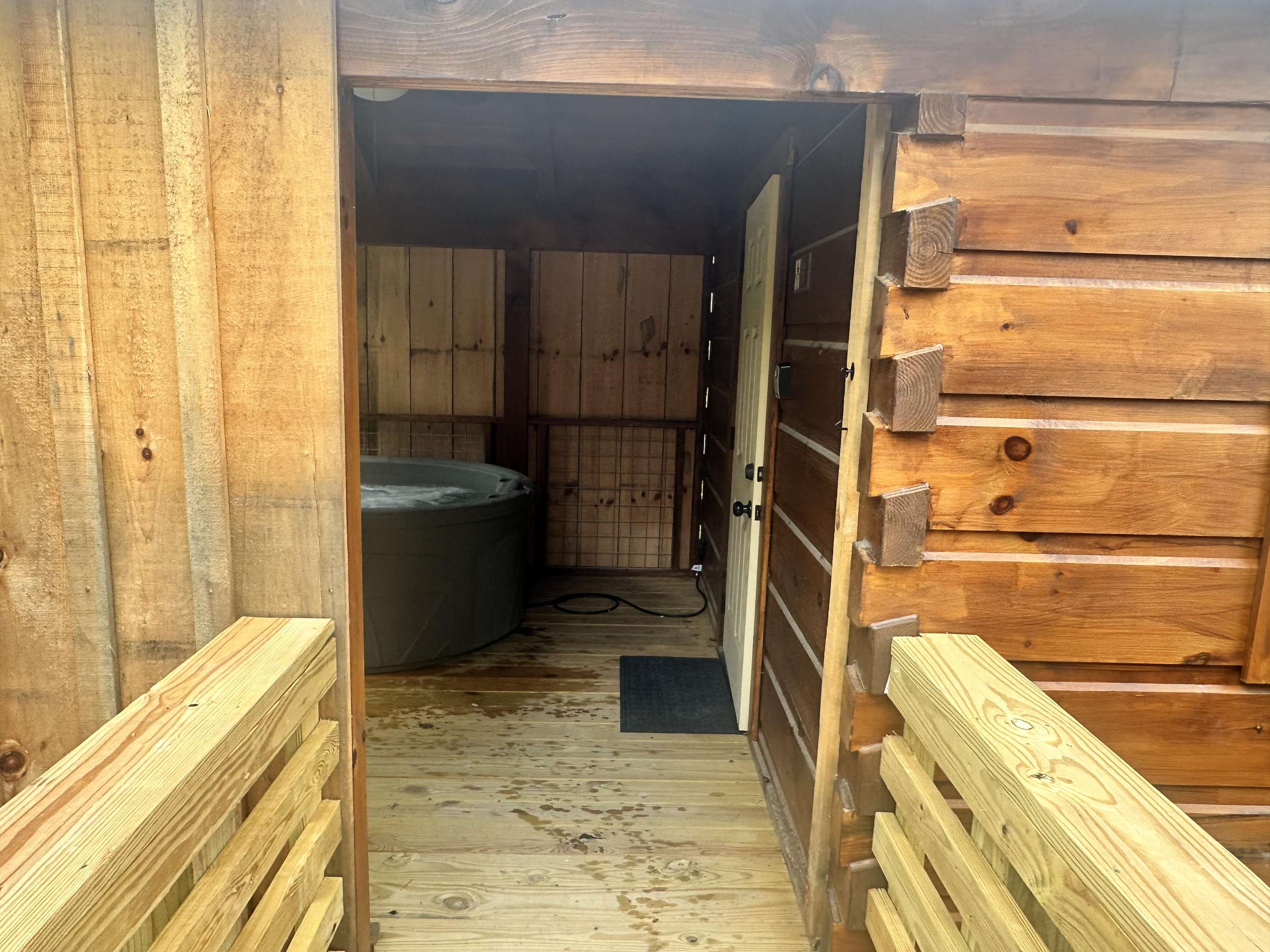 The Hideaway Holler cabin has log decor throughout. There is a futon in the living room along with end tables. The bedroom has a King bed with cotton quilt. Cell phone service is Great and the WiFi is super fast in this cabin. Most guest are able to use WiFi calling also while at these. The private, covered porch has a four person hot tub, gas grill, two rocking chairs, and a table. This cabin overlooks a pond in the winter time and has a wooded view in the summer time.. This cabin is pet friendly!!! The Hideaway Holler cabin is just perfect