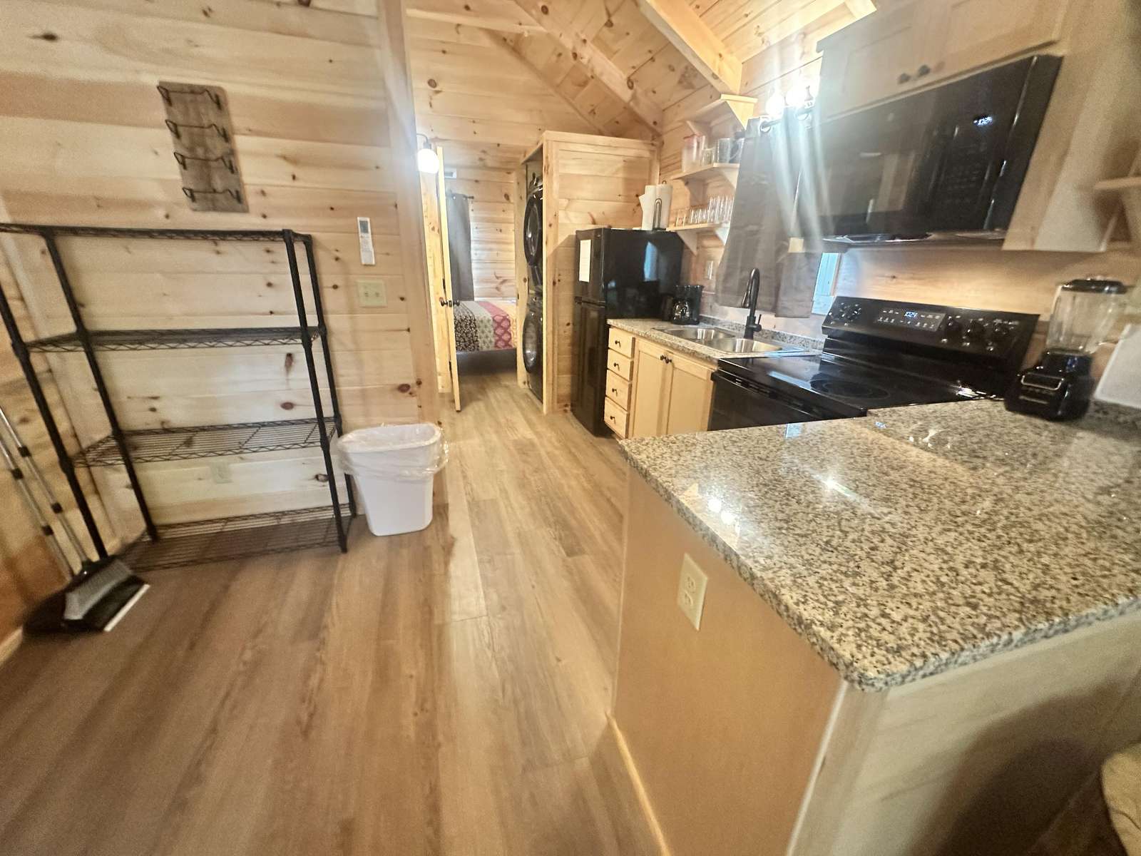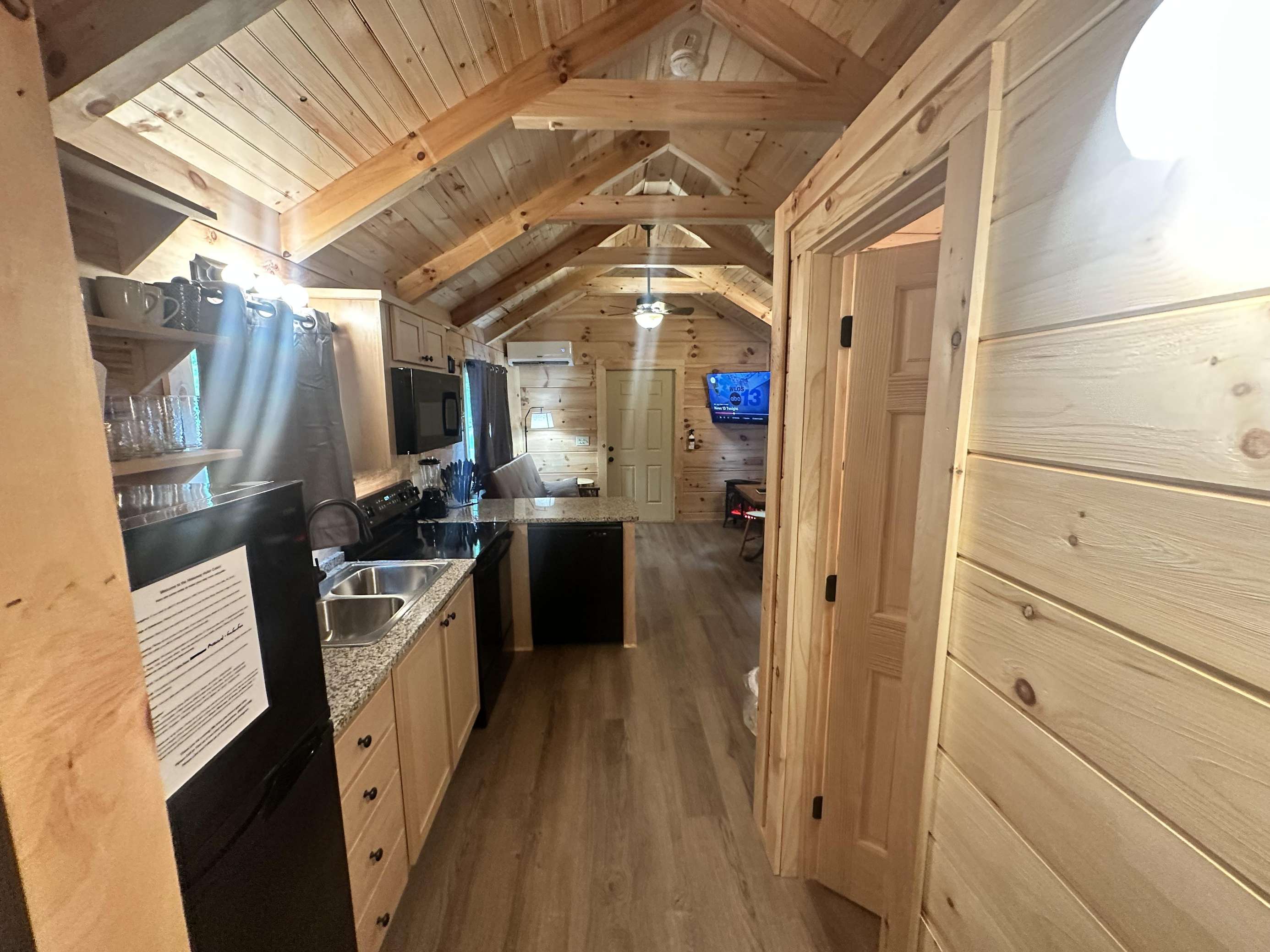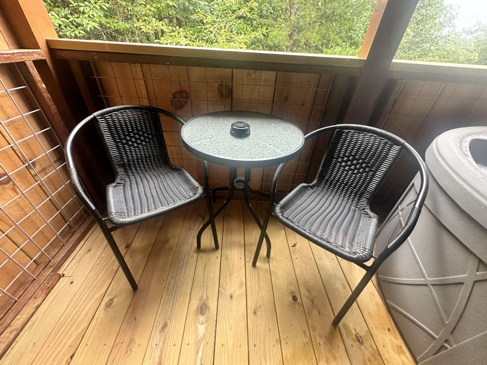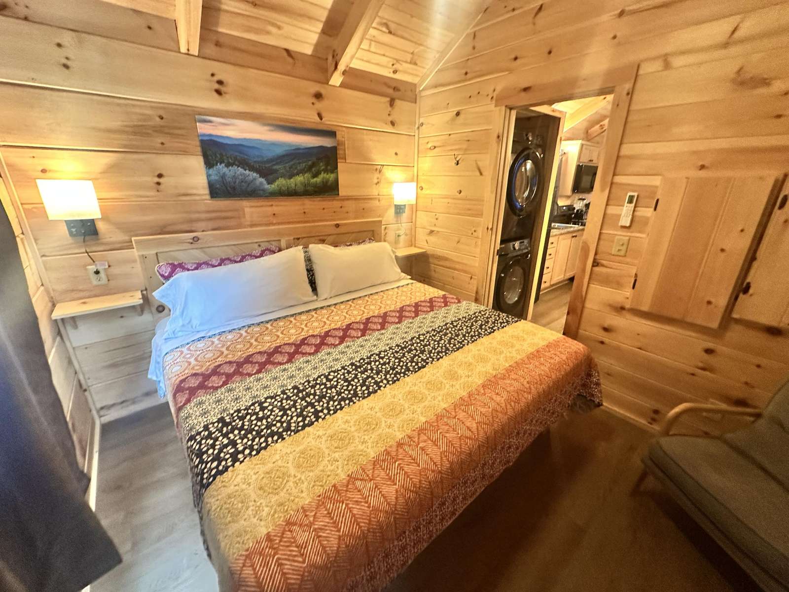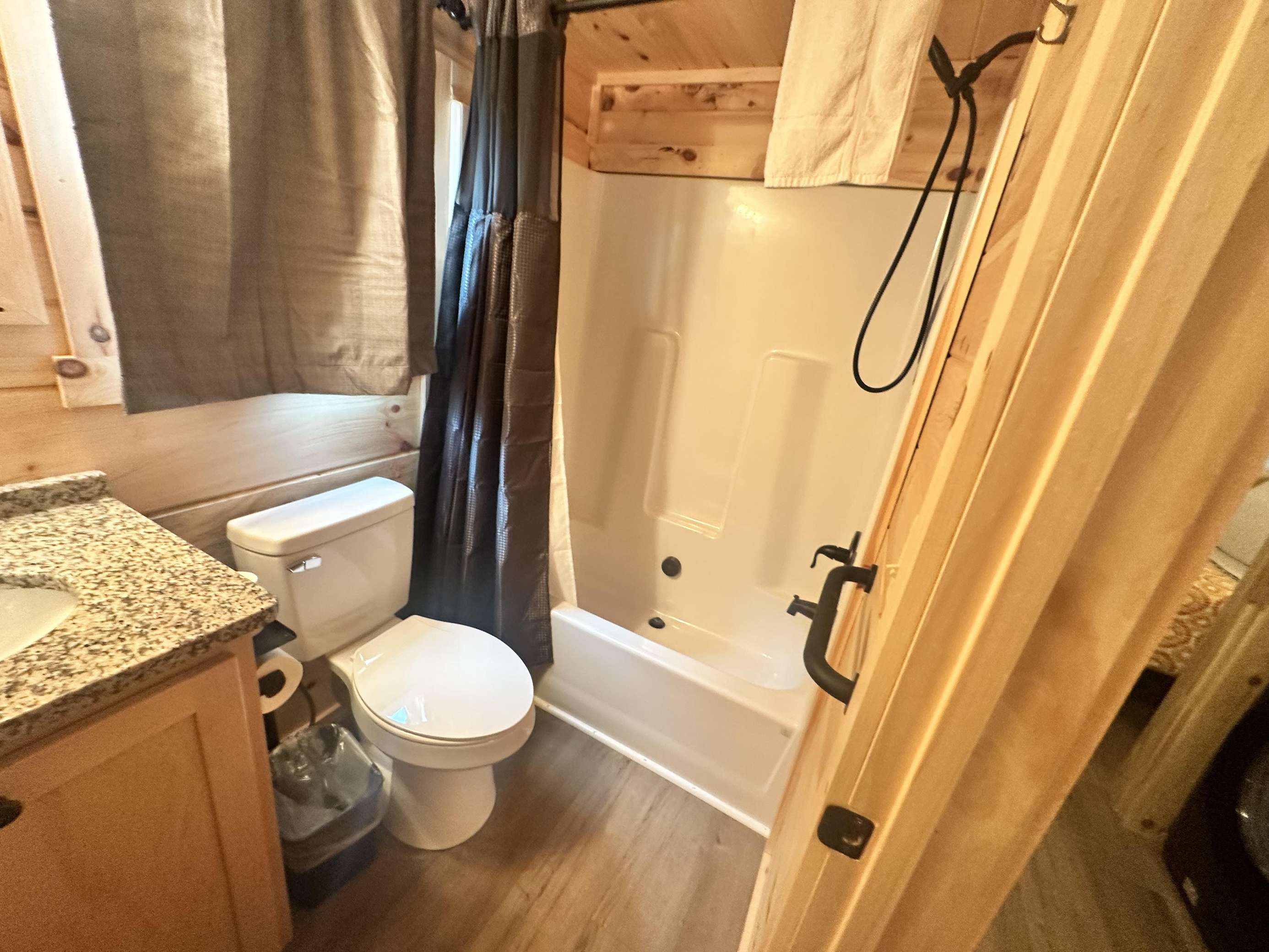 The Hideaway Holler cabin has log decor throughout. There is a futon in the living room along with end tables. The bedroom has a King bed with cotton quilt. Cell phone service is Great and the WiFi is super fast in this cabin. Most guest are able to use WiFi calling also while at these. The private, covered porch has a four person hot tub, gas grill, two rocking chairs, and a table. This cabin overlooks a pond in the winter time and has a wooded view in the summer time.. This cabin is pet friendly!!! The Hideaway Holler cabin is just perfect