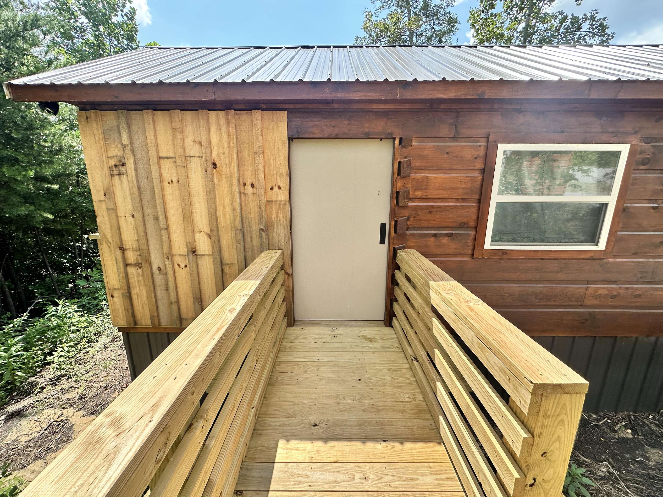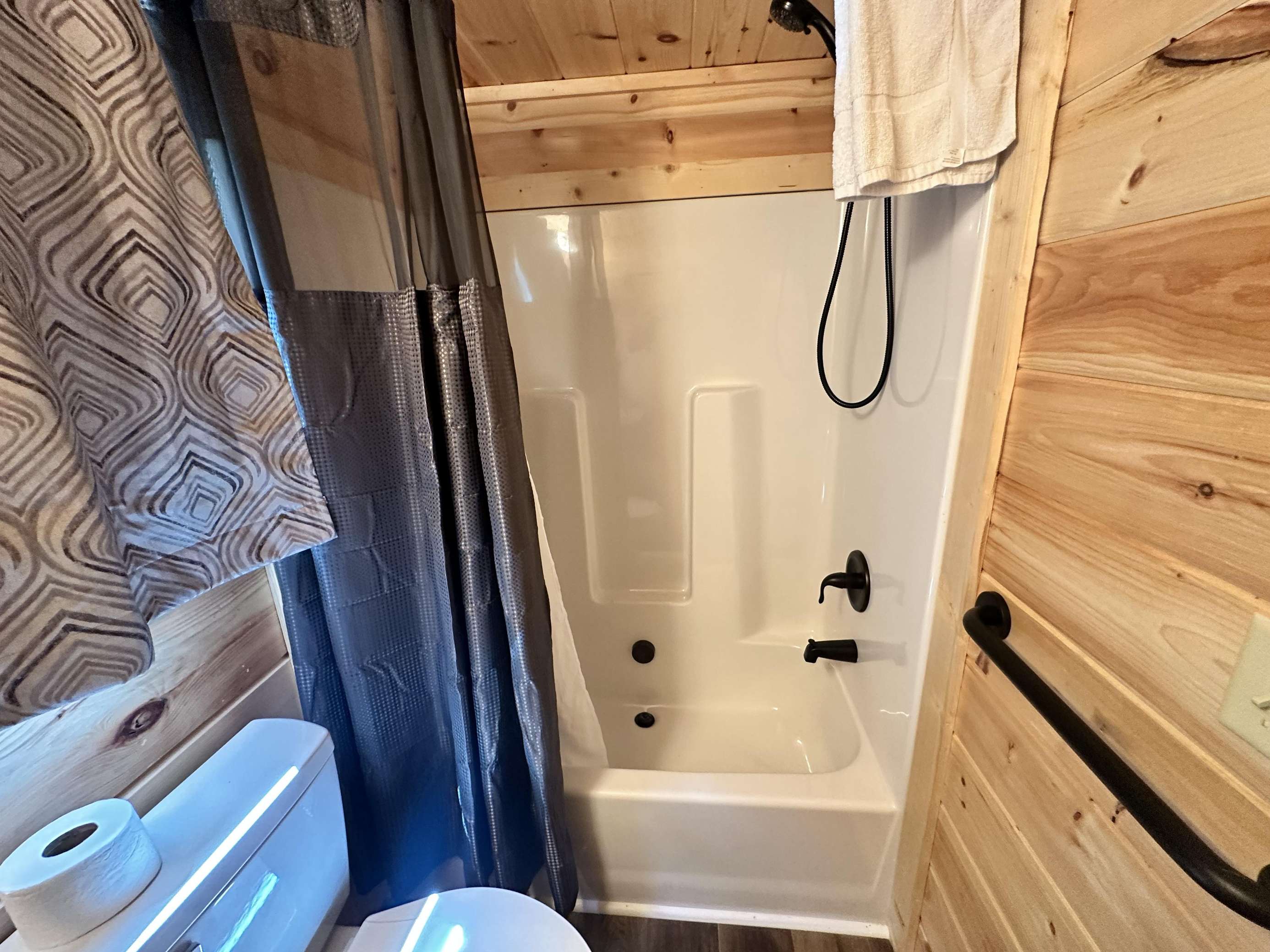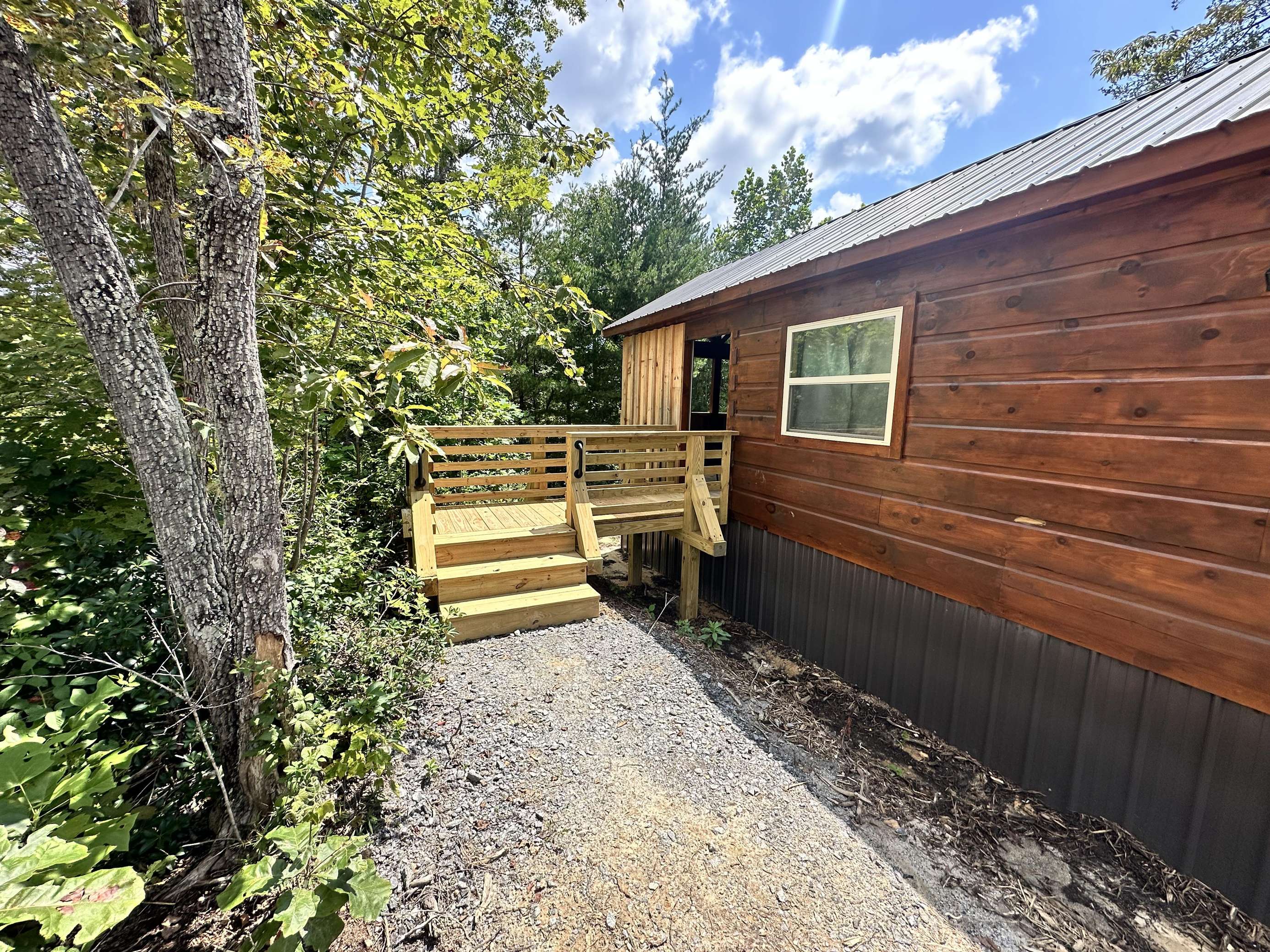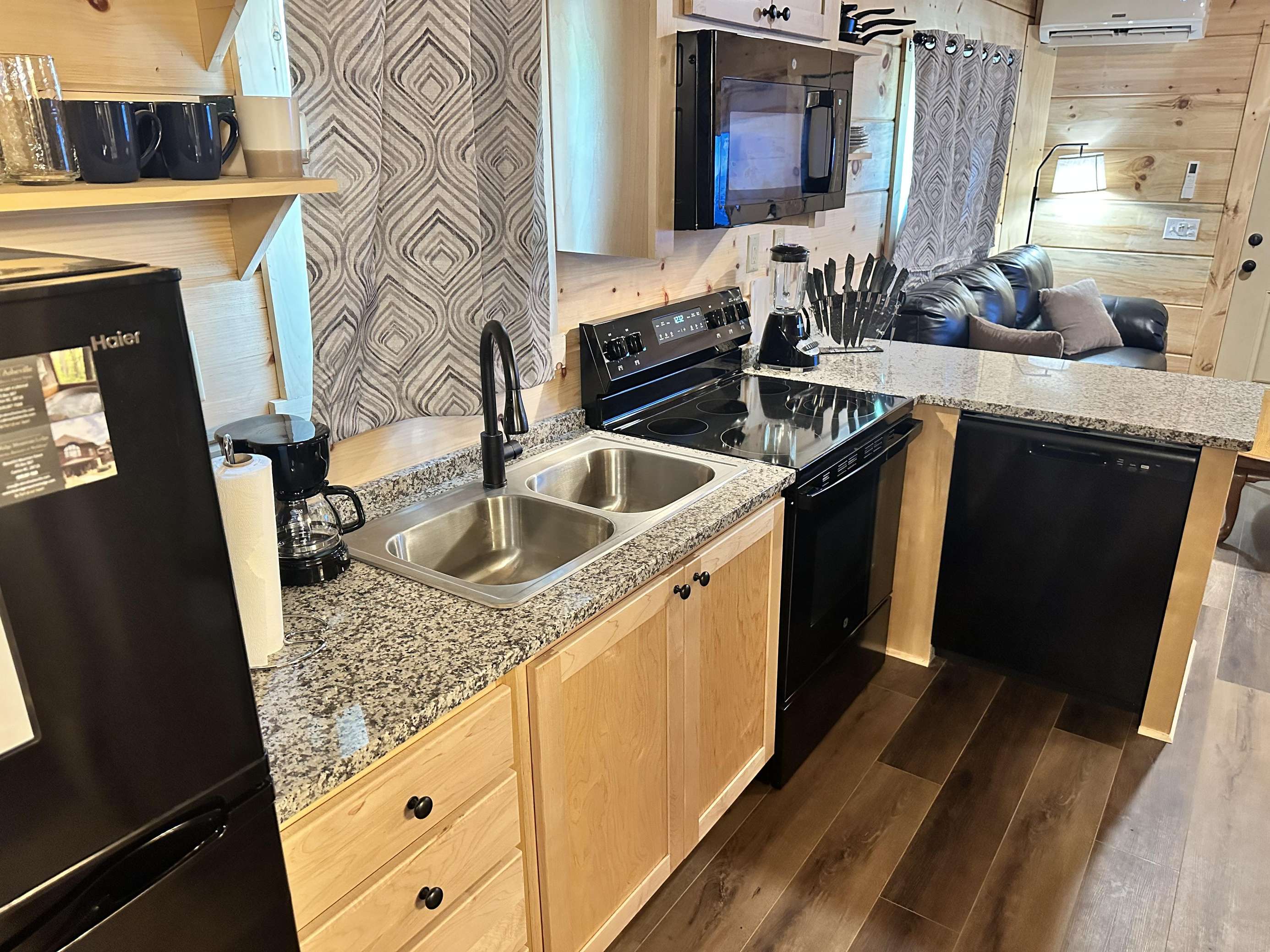The Kiss N Tell cabin has log decor throughout. There is a couch in the living room along with a coffee table. The bedroom has a King bed with cotton quilt. Cell phone service is Great and the WiFi is super fast in this cabin. Most guest are able to use WiFi calling also while at these. There is a charcoal grill outside. The private, covered porch has a hot tub, two chairs, and a table. This cabin overlooks a meadow in the winter time and has a wooded view in the summer time.. This cabin is pet friendly!!! The Kiss N Tell cabin is just perfect